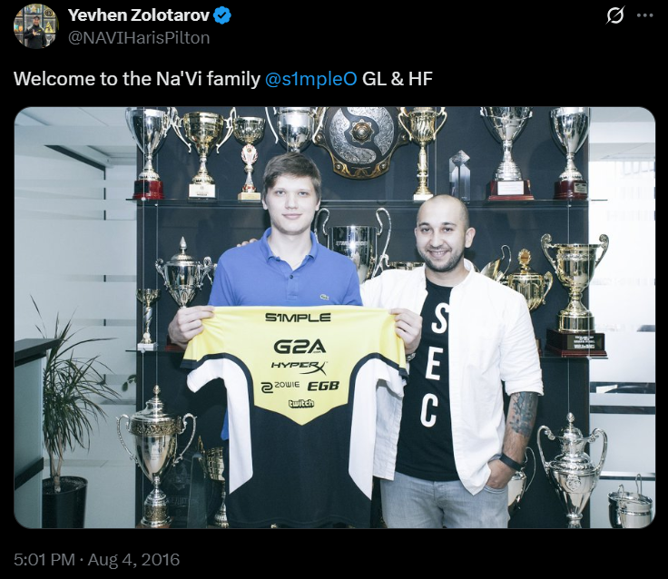 As offers rolled in from top European and American teams, s1mple made a bold move. On August 4, 2016, he joined one of Counter-Strike’s most iconic teams: Natus Vincere.