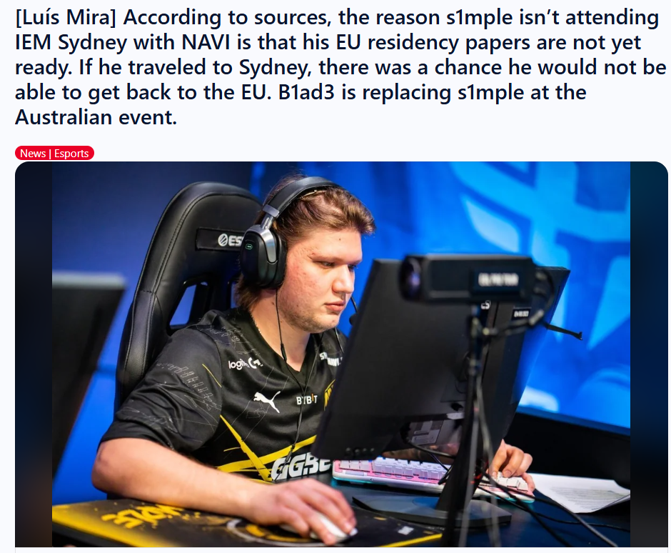 In September 2023, NAVI quietly announced that s1mple wouldn’t join them in Sydney, citing travel issues and his reluctance to play the early version of CS2. Not long after, he officially went inactive—for the first time in years, NAVI had to go on without him.