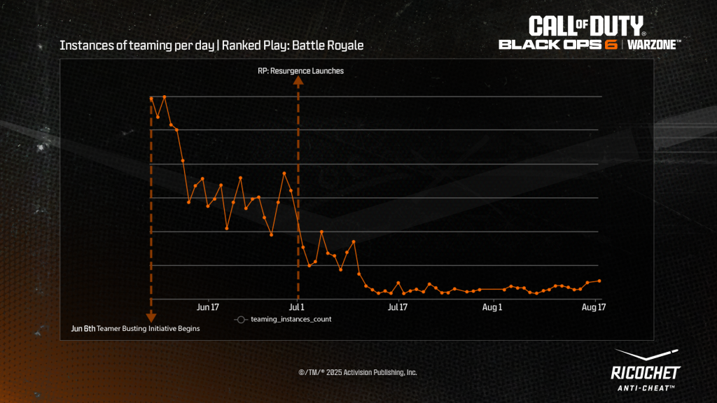Activision has disclosed that more than 55,000 cheaters were impacted by their latest round of anti‑cheat mitigations in August. These efforts span across both casual and competitive modes in Call of Duty: Warzone and Black Ops 6.