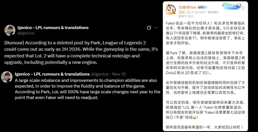 According to a series of leaked posts originally appearing on China’s Weibo, Riot Games is preparing to launch what fans believe to be League of Legends 2 in the second half of 2026.